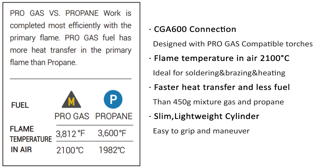 RTM 400g PRO GAS cylinder provides maximum heat output for more efficient use and faster soldering times. Designed for heavy-duty applications including soldering&brazing copper pipes,automotive repair,loosing rusted nuts and many other heat-treating applications. The slim,lightweight cylinder is easy to grip and maneuver.